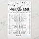 Compra este juego monocromo editable y disfruta de alta calidad ¿Le gustaría tarjeta para tu evento? Esta es una plantilla de juego, ¡Puedes cambiar las preguntas como quieras! Confesti plateado. Diseño en blanco y negro.