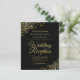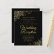 Estas invitaciones a la recepción de bodas asequibles y económicas son la elección perfecta para disfrutar de clase, estilo y belleza a buen precio. Están pensadas para los invitados a la recepción, pero no para la ceremonia, y cuentan con un fondo negro clásico con unos adornos de Relieves metalizados falsos dorados y unos giros en las esquinas. La tipografía incluye lujosas letras de guiones dorados para un estilo que es a la vez simple y elegante. Una forma maravillosa de invitar a tus amigos y familiares a compartir tu alegría en tu día especial sin romper el banco.