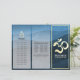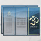 Yoga Fitness Studio / Instructor de Meditación / entrenador personal / entrenador de vida / Healer / Reiki Master / Massage Therapy Tri-Fold Brochures Template - Modern Faux Relieve metalizado dorado Om Symbol en el fondo del patrón de onda azul oscuro.
