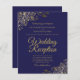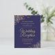 Estas invitaciones a la recepción de bodas asequibles y económicas son la elección perfecta para disfrutar de clase, estilo y belleza a buen precio. Están pensadas para los invitados a la recepción, pero no para la ceremonia, y tienen un fondo azul marino con unos adornos de Relieve metalizado de imitación dorada y unos flamencos en las esquinas. La tipografía incluye lujosas letras de guiones dorados para un estilo que es a la vez simple y elegante. Una forma maravillosa de invitar a tus amigos y familiares a compartir tu alegría en tu día especial sin romper el banco.