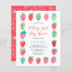 Una invitación a la moda de los dulces de berry con fresas pintadas a mano en rojo y rosa con pequeños toques azules y verdes.