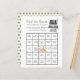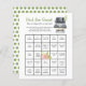 Cuidada y adorable acuarela de un mapache bebé con un elegante sombrero de techo y un arco. Fuente alegre y divertida en verde para encontrar el título de juego de bingo invitado y carbón vegetal para detalles e instrucciones adicionales de juego de bingo de ducha de bebé. Back of Baby Shower Game presenta un moderno patrón de puntos de polka verde. El diseño forma parte del Baby Shower Adorable Baby Raccoon, que incluye invitaciones para duchas de bebé, cajas para raffle de pañales y biblioteca, suministros para fiestas, decoración y regalos para recién nacidos.
