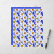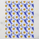 Papel en un patrón acuarela de margaritas blancas con centros amarillos dorados, sobre un fondo en tonos de azul denim