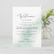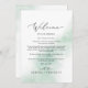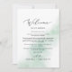 Estas tarjetas de bienvenida y tarjetas itinerarias de color boda verde de color agua son perfectas para un boda moderno. El diseño es sencillo y clásico, con un toque de color verde azulado pastel y un estilo minimalista y elegante. La parte delantera de la tarjeta incluye una carta de bienvenida y la parte trasera de la tarjeta incluye el itinerario del boda. Estas notas son perfectas para bodas de destino y bolsos de bienvenida para huéspedes del hotel.