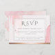 Tarjeta de respuesta RSVP de boda | Moderno y moda , salpicadura de color rosa de color claro combinado con una banda de cobre metálico falsa en el fondo . Un marco doble de pewter lo suficientemente translúcido como para ver la acuarela que hay detrás encierra los detalles del rsvp escritos en un tipo de letra contemporáneo. Diseño creado para BarefootBride™ por © WhimsicalArtwork™ Personalizar texto, estilo de fuente, color y tamaño. Creamos esta plantilla para facilitar la personalización con su propia información. Esto forma parte de una completa suite de estilo Boda con boda, ducha para bebés y otras papelería de eventos.