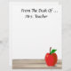 Personalice fácilmente este papel de membrete personalizado desde el escritorio de... con cualquier nombre. O, basta con dejar de lado el texto por completo eliminándolo. Una manzana roja con ilustracion de hojas verdes sobre un escritorio de madera está en la esquina inferior. Mucho espacio de copia para escribir más tarde. Gran idea de regalo personal para profesores, médicas, enfermeras, profesionales de la salud, etc. Recuerda: "¡Una manzana al día mantiene al médica lejos!"