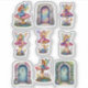 Un suave y encantado estilo define esta hoja de adhesivos de efímero para scrapbook, que muestra una colección de recortes de puertas de hadas que parecen haber sido arrancados directamente de un reino forestal oculto. Cada puerta en miniatura está elaborada con marcos de piedra desgastada, cuyos bordes texturizados dan la impresión de antiguos caminos tallados en laderas cubiertas de musgo. Las enredaderas de rosas trepan con gracia por los lados, sus flores se despliegan en tonos suaves y románticos que añaden un toque de delicada fantasía a cada viñeta.