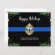 Envía saludos navideños felices a amigos, empresarios, compañeros de los departamentos de aplicación de la ley y a tu comunidad con esta tarjeta única de Navidades del Departamento de Policía de la Línea Azul - Negro y azul moderno con hojas y bayas huecas. Personaliza con el logo, mensaje y departamento del departamento de policía . Estas postales de navidad barata necesitan ser enviadas por correo como postales sobredimensionadas, por lo que pueden incurrir en cargos de franqueo estándar, pero no necesitan un sobre o una etiqueta de dirección de retorno. DERECHOS RESERVADOS © 2020 Judy Burrows, Black Dog Art - Todos los derechos reservados. Navidades del Departamento de Policía de la Línea Azul delgada del presupuesto