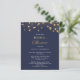El flyer de ducha de oro y azul de la marina Minimalista con un presupuesto moderno, presenta guiones dorados y puentes de polka dorados brillantes en el elegante y moderno fondo azul de la Marina. La otra cara de la invitación a la novia es la Marina Azul con brillantes puntos de polka dorados. Tenga en cuenta que los sobres NO están incluidos en este diseño. Si necesita sobres, por favor compruebe nuestra colección o compre por separado del mercado.