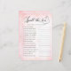 Haz que los invitados se rian y recuerden con este divertido juego de ducha de novia "Spill the Tea". Con un suave fondo de color rosado, rotulaje vintage y un guión elegante, esta tarjeta invita a los huéspedes a responder preguntas sobre la futura novia. Es una manera alegre y encantadora de agregar conexión y entretenimiento a su fiesta de té o celebración con temas de jardín. Perfecto para: ・ Juegos de ducha de novia con fiesta de té ・ Actividades de ducha románticas o antiguas ・ Coincidir con sus tarjetas de consejo y carteles de "Derrame el té" ・ Creación de momentos memorables con la futura novia