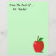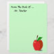 Personalice fácilmente este papel de membrete personalizado desde el escritorio de... con cualquier nombre. O, simplemente, deja de lado el texto por completo. Una manzana roja con ilustracion de hojas verdes en la esquina inferior. Mucho espacio de copia para escribir más tarde. El fondo mostrado es un verde claro que se puede cambiar fácilmente. Haga clic en el personalizar y luego en "colores" para cambiarlo. Gran idea de regalo personal para profesores, médicas, enfermeras, nueces de salud, etc.