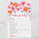 Mejore su ducha de bebé con nuestras encantadoras tarjetas de juego "Deseo para el bebé", diseñadas para complementar perfectamente el tema de su celebración. Con un diseño elegante de rosas rosas rosas rosas, peonías y dahlias, entrelazadas con follaje de eucalipto verde suave y delicados brotes rosas, estas cartas le añaden un toque de belleza a su evento. Las rodajas vibrantes de naranja de sangre con centros rosados y naranjas se incorporan delicadamente en el motivo floral, añadiendo un toque único y delicioso. Los huéspedes pueden escribir sus más sentidos deseos y consejos para los futuros padres en estas tarjetas de juego, creando así preciadas agueternas para el futuro del bebé. Perfecto para cualquier ducha de bebé, brunch, almuerzo o rociado, estas tarjetas animan a los clientes a compartir sus bendiciones de una manera cuidadosa y significativa. Haga que su ducha de bebé sea memorable con estas hermosas tarjetas de juego "Wshes for Baby" (Deseos para el Bebé) que reflejan la alegría y la anticipación de dar la bienvenida a su nuevo miembro de la familia.