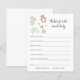 Haga que sus huéspedes llenen estos adorables deseos de tarjetas para bebés en su ducha de bebé. Cuenta con un ilustracion de animales rellenos de acuarela para que coincidan con nuestra Colección de Juguetes Bebés Dulce Vintage. Personaliza el con el nombre y la fecha de ducha de la futura mamá.