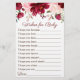 Lámina Deseos para el juego de Baby Shower Burgundy Pink