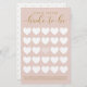 Diversión y elegante juego de bingo de despedida de soltera para la novia. Divertido juego para jugar en tu fiesta de despedida de soltera. El diseño presenta un diseño moderno y elegante con una cuadrícula de bingo de corazón blanco. La caligrafía elegante en color dorado y la paleta de colores rosa crean un look chic moderno.