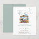Despedida de Soltera Presupuesto Ella Está Fresca en el Mercado Sage. Un tamaño más pequeño 4.5 x 5.6" semi brillo, similar en grosor a una postal, a un precio económico. Hay UNO por hoja. La palabra "Mercado" está en un elegante guión establecido. El resto del texto se puede personalizar fácilmente. Con una ilustración de acuarela de un puesto de mercado de agricultores florales.