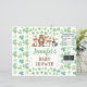 Tema de [TODO el texto es EDITABLE]: Día de San Patricio de los animales de las tierras boscosas de Shamrock. Ocasiones: Baby Shower, fiesta de cumpleaños infantil. Estilo: Agradable, Elegante, Boho. Colores: Verde, Oro, Blanco. Gráficos: Chispas color agua, animales de bosque, confetti de oro falso.