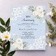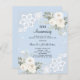 Por un elegante y romántico 60 aniversario boda. Fondo azul claro decorado con flores blancas, rosas, diamantes y encaje blanco. Personalice y agregue sus nombres y detalles. 1 hoja = 1 borde impreso de invitación al borde.