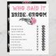 Lámina Dijo Que Dijo | Juego de ducha de novia