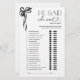 Dijo que dijo que la tarjeta de juego Black Bow Bridal Shower Game es elegante y atemporal, el Monocromo Black Bow "Who Was First" (Quién fue primero) dijo que dijo que dijo que la tarjeta de juego incluye un arco de cinta negra pintado a mano en la esquina superior, combinado con tipografía de moda y atrevidos labios negros e iconos de bigote para un aspecto limpio y moderno. Los huéspedes pueden hacer circular sus suposiciones sobre quién fue "primero" en varios momentos de relación, convirtiéndolo en un juego divertido e interactivo de ducha de novia. Copyright Anastasia Surridge, todos los derechos reservados.
