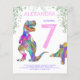 Colorido dinosaurio 7 cumpleaños fiesta de invitación rosa presupuesto. Celebra al chica que le encanta que los dinosaurios cumplan siete años con este Roaring color rosa y púrpura T-Rex y el lindo estegosaurio que invita a los fans de Dino a una fiesta de cumpleaños. Personalice esta colorida y psicodélica invitación a la selva del tiranosaurio y el estegosaurio Jurásico añadiendo el nombre del niño o chica de cumpleaños, el número de cumpleaños y los detalles del fiesta y todos se preparan para un divertido cumpleaños de dinosaurios con temática rosa. Todas las especies de dinosaurios son bienvenidas. Ilustraciones de Dinosaur de la era del jurásico prehistórico, obra original de la artista Catherine Sweetman