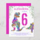 Celebra al chica que le encanta que los dinosaurios cumplan seis años con este Roaring color rosa y púrpura T-Rex y el lindo estegosaurio que invita a los fans de Dino a una fiesta de sexto cumpleaños. Personalice esta colorida y psicodélica invitación a la selva del tiranosaurio y el estegosaurio Jurásico añadiendo el nombre del niño o chica de cumpleaños, el número de cumpleaños y los detalles del fiesta y todos se preparan para un divertido cumpleaños de dinosaurios con temática rosa. Todas las especies de dinosaurios son bienvenidas. Ilustraciones de Dinosaur de la era del jurásico prehistórico, obra original de la artista Catherine Sweetman