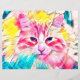 Cutáneo gato azul, rosa, amarillo, negro arte cerca. Los amantes de los gatos gatos gatitos rompen papel. Diseño moderno, moda, moderno, fresco y elegante inspirado en el arte pop. Este papel de 110 libras se puede usar para tu álbum de fotos, proyectos de artesanía o desempate que requieran papel más pesado. Derechos de imagen de Marg Seregelyi Photography.