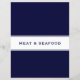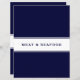 Personalizado página de índice de receta de doble cara para un encuadernador de recetas de ollas azul marino y blanco; un diseño de conjunto de correspondencia. Presenta un diseño minimalista sencillo y moderno en una paleta clásica de color azul marino y blanco con texto en personalizable presentado en un banner blanco de coordinación con acentos navales. El cartel muestra el texto personalizado mostrado con el texto "MEAT & SEAFOOD" en letra simple. Puede cambiar el texto mediante los campos proporcionados o utilizar el botón "mensaje" para ponerse en contacto con el diseñador para obtener ayuda. Para crear su propio divisor de temas de recetas de libros de cocina: 1. Seleccione personalizar esta plantilla. 2. Sustitúyase el texto. 3. Revise su diseño para dimensionar y colocar. Un sencillo biombo de capítulos para encuadernar recetas modernas para completar el kit de encuadernador de recetas de cocina, para organizar sus recetas o planes de comida, o un reflexivo regalo de cocina moderna para el cocinero, chef u organizador de la casa en su vida.