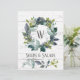 Este separador de páginas de organizador de carpetas de recetas presenta un fondo rústico de madera blanca y gris, con flores verdes y monograma familiar inicial en el centro. Debajo está el título de su receta para personalizar acentuado por una vid verde. Diseñado por Susan Coffey.