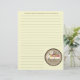 Papel recetario con líneas opcionales, que se puede eliminar. El fondo cuenta con un ilustracion de una docena de macarones franceses de colores en una caja de regalo de color beige con una delicada cinta marrón. Personaliza con tu nombre bajo ilustracion. También personalizar el texto en la parte superior.