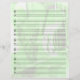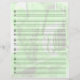 Añade carácter a tu música con este papel de personal en blanco que tiene un hermoso fondo de varios instrumentos en un suave tono verde. Es genial para los compositores o para cualquiera que quiera poner su música en papel con un toque más llamativo. Clef de truco y bajo preimpreso.