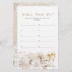 (Elija acabado de papel MATT - NO semi-brillante - para escribir). Añade una actividad divertida y memorable a tu ducha de novias con el juego '¿Dónde estábamos?', donde los huéspedes adivinan la ubicación de las fotos que muestran a la novia y al novio. Este juego, adornado con delicadas flores de acuarela y elegantes perlas, trae risas y alegría a su celebración, complementando perfectamente la Elegante Colección de Perlas y Ducha Bridal Prosecco.