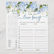 Lámina DOUBLE SIDED Blue Hydrangea Bridal Shower Game