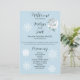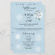 Un pequeño dragón blanco se sienta entre rosas blancas contra un suave fondo azul claro con delicados copos de nieve.