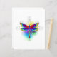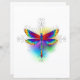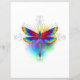 Luminosa, arco iris, libélula poligonal sobre fondo blanco, pintada con acuarela.