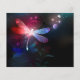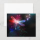 Flor, vuelo, libélula roja, con alas transparentes y detalladas sobre fondo oscuro, nocturno y luminoso con plantas tropicales y luciérnagas. Lluvia roja.