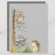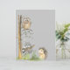 Cuatro bonitos y divertidos animales de bosque (raccoon, búho, zorro, erizo) con un árbol y follaje en un fondo gris claro de la colección de animales de bosque. En la parte de atrás un búho, un mapache y un erizo, bajo espacio para la redacción.