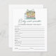 Una acuarela de un montón de libros está atada con un arco verde. Pronto comenzará un nuevo Capítulo. Libros de ducha para bebés, capítulo nuevo. RESPUESTAS: REVUELTAS, LLORACIÓN, PACIFICADOR, BOTELLA, LUZ NOCTURNA, LULLABY, ESPÍRITU, EPIDURAL, BURP, SILLA ALTA, BOLSA DE DIAPER, ESPADA