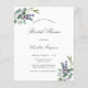 Un elegante fondo blanco en la parte delantera. Decorada con eucalipto y flores de lavanda. Personalice y agregue sus nombres y detalles. Fondo: fondo gris verde.