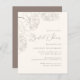 Esta invitación a la ducha de novia de bajo presupuesto es perfecta para celebraciones de primavera o verano relacionadas con el jardín. Presentando peonías dibujadas a mano en la esquina superior izquierda en gris suave contra fondo crema. Los detalles de su fiesta se muestran en una tipografía minimalista de suero con "Bridal Shower" en un guión elegante de caligrafía. Simplemente haga clic en "Personalizar esta plantilla" y comience a añadir sus propios detalles.