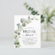 Celebra el estilo de la futura novia con nuestra magnífica invitación a la ducha de novias con eucalipto. Este bonito diseño cuenta con elegantes hojas de eucalipto sobre un fondo suave y neutro, lo que lo convierte en la elección perfecta para una ducha de novia con temática botánica. Haga que el día especial de la futura novia sea aún más memorable con nuestra impresionante invitación a la ducha de novias con eucalipto. Con su hermoso diseño y opciones de personalizable, es la manera perfecta de compartir la alegría y la emoción de los próximos nupciales con la familia y amigos. ¡Elige la tuya!
