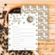Granos de café acuarela y patrón de taza de café y frijoles. Café preparando una ducha de bebé. Ducha de bebé con temática de café. Texto con anillo de café y con granos de café y taza de café.