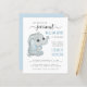 Una invitación a una ducha virtual para un niño pequeño y económico. "Nuestro dulce cacahuete está en camino" está escrito en una mezcla de tipografía azul y gris suave y un guión de bonito con toques. Personalice los nombres del niño y de la futura madre en la tipografía azul junto a una preciosa acuarela de un elefante bebé y añada los detalles de la ducha en línea en una simple tipografía gris moderna.
