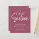 Esta elegante y festiva película de 4.5" x 5.6" Sweet 16 Fiesta Paper Invitation incluye las palabras "Sweet Sixteen" (Dieciséis Dulces) en una fuente moderna de oro (Relieve metalizado simulado). El fondo es rosa (berenjenas, magenta), pero se puede cambiar a cualquier color que se desee. Los detalles del fiesta se pueden personalizar fácilmente para su evento especial. Una forma bonita, sencilla y barata de invitar a los huéspedes a celebrar su 16 cumpleaños. Los sobres se venden por separado como un anuncio.