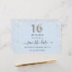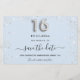 Una chica y de moda Salva la tarjeta de fecha para una dulce fiesta de 16 años. Un fondo azul bebé decorado con polvo falso purpurina plateado. Personalice y agregue una fecha y un nombre/edad. El texto: Save the Date se escribe con un gran guión de estilo escrito a mano. Número 16 con un tipo de letra de estilo globo.