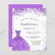 Una invitación moderna, elegante y glamurosa para una fiesta de 16 y 16 años. En la parte delantera, un fondo blanco con violeta, brillo de lila, un vestido violeta. El nombre está escrito con una escritura de estilo con letras a mano moderna. Personalice y agregue los detalles de su fiesta.