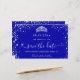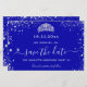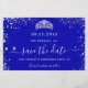 Una chica y de moda Salva la tarjeta de fecha para una dulce fiesta de 16 años. Un fondo azul real. Decorada con un polvo falso purpurina de plata y una tiara, corona. El texto: Save the Date se escribe con un gran guión de estilo escrito a mano.