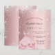 Una invitación moderna, elegante y glamurosa para una fiesta de 16 y 16 años. Un fondo de aspecto metálico rosa fino y rosa con un falso purpurina de plata y un batuche de oro rosa. El nombre está escrito con una escritura de estilo con letras a mano moderna. Personalice y agregue los detalles de su fiesta.