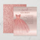 Esta invitación de cumpleaños es perfecta para una princesa que celebra su dulce cumpleaños número 16. Presenta un vestido color rosa y un falso purpurina de oro rosa con escritura moderna y tipografía popular. Reemplace fácilmente los detalles del fiesta haciendo clic en el botón "Personalizar" situado arriba.