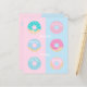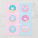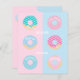 Un dulce género de donut azul y rosa revela la invitación. Las seis donuts están decoradas de forma única y son azules o rosas, ¿qué te parece? Oh Bebé. Personalice agregando los detalles del evento al reverso.